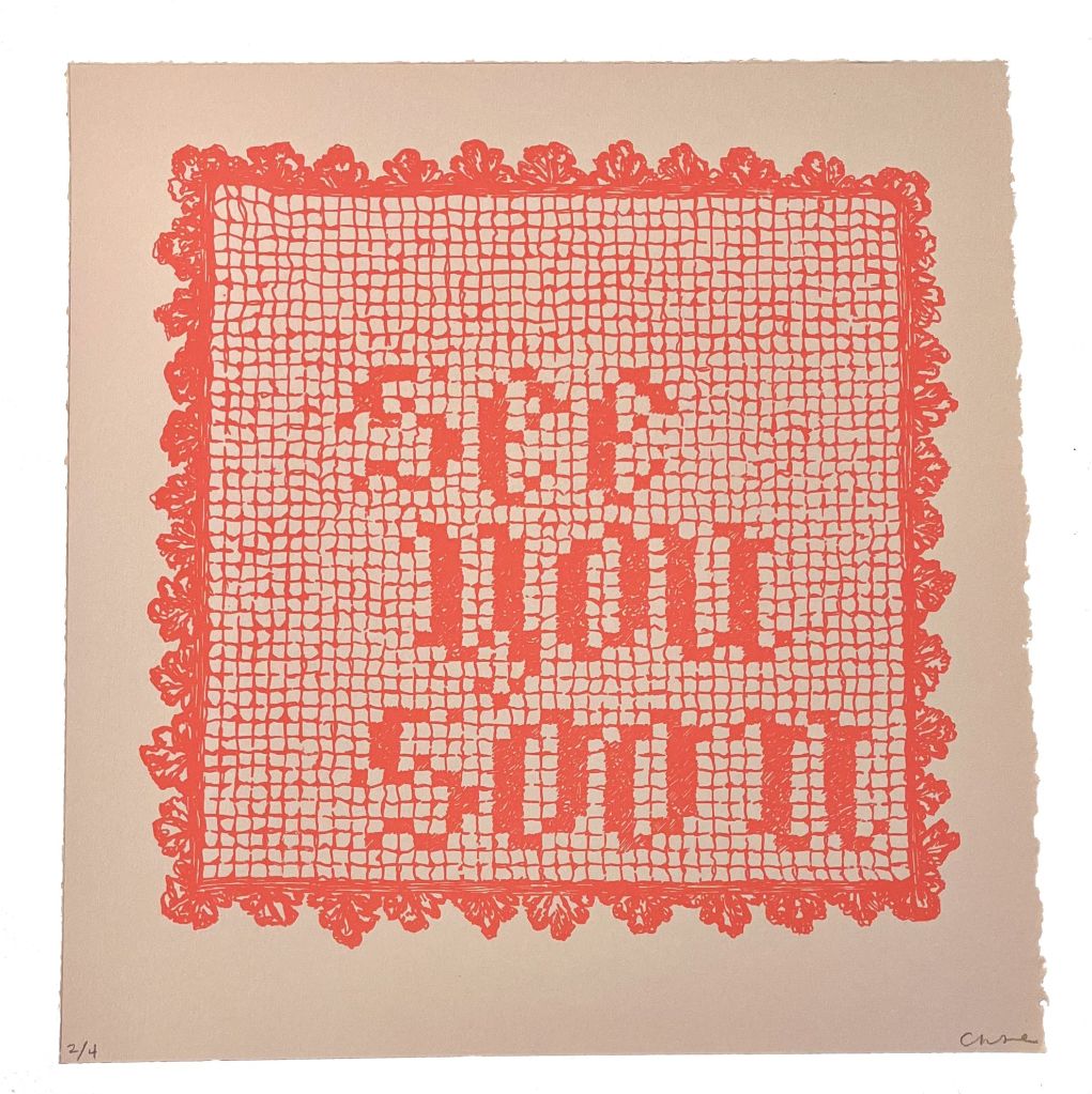 cotton fabric hand dyed with brazilwood, hand quilted and embroidered, 18″ x 34″, 2025